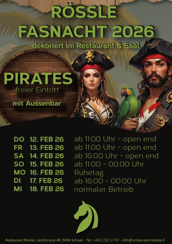- Fasnachtsmontag Ruhetag / Fasnachtsdienstag 16 – 00 Uhr