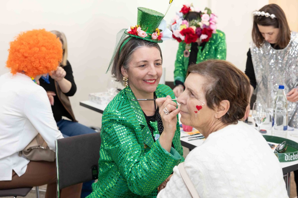 Bereits beim Apéro im Lindahof war die Stimmung hervorragend – doch als sich die Türen zum SAL öffneten, erhielt die gute Laune nochmals Aufschwung. Dabei sorgten die Gemeinderätinnen Alexandra Konrad-Biedermann, Laura Frick, Jeannine Preite-Niedhart und Melanie Vonbun-Frommelt mit ihren Schminkkünsten dafür, dass niemand den festlich dekorierten Saal allzu farblos betreten musste.