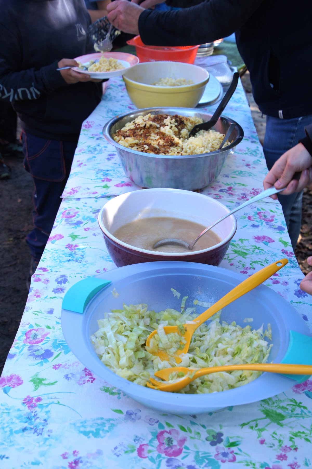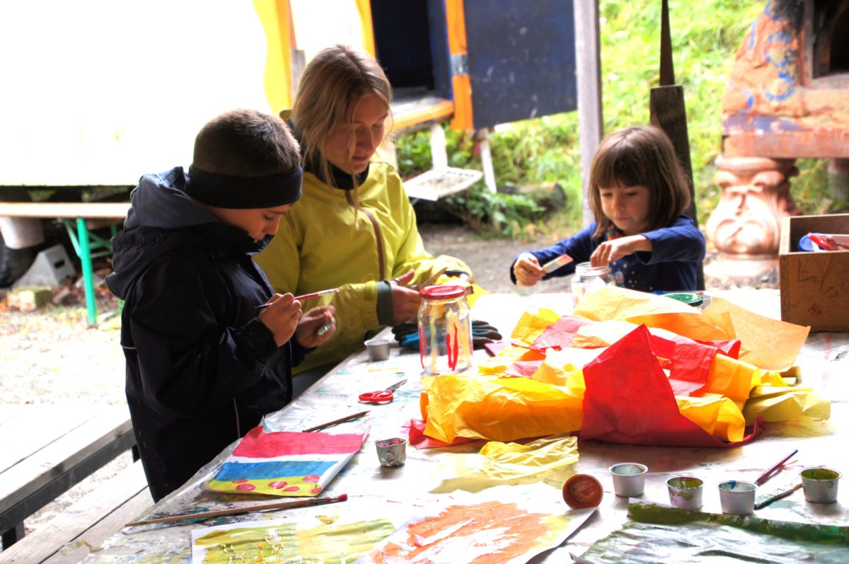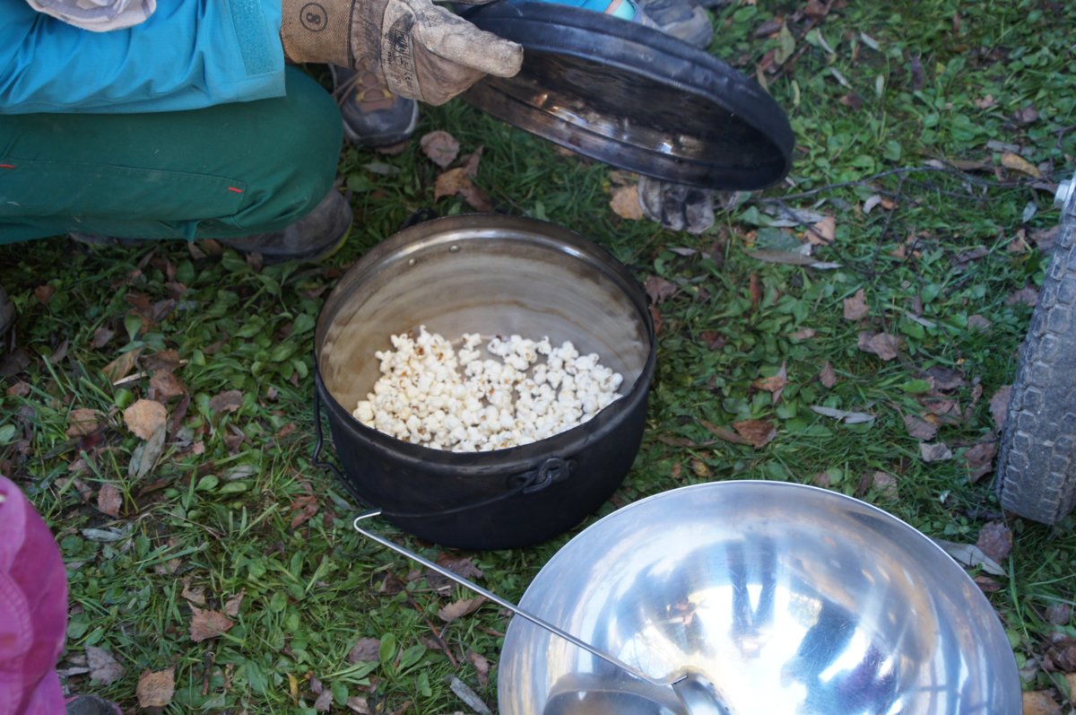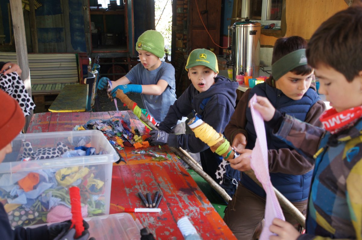 Besonderer Beliebtheit erfreuten sich – natürlich – die über dem Feuer hergestellten Popcorn und die selbstgemachten Fackeln, mit denen am Mittwochnachmittag ein kleiner, aber richtig stimmungsvoller Fackelzug durchs Gelände auf die Beine gestellt wurde. In den kreativen Ecken entstanden zudem Windlichter und andere feurige Basteleien, die den Platz zum Leuchten brachten.