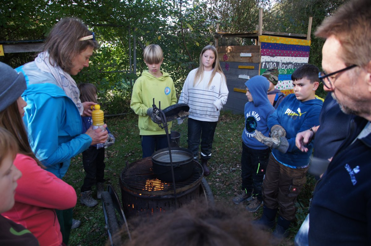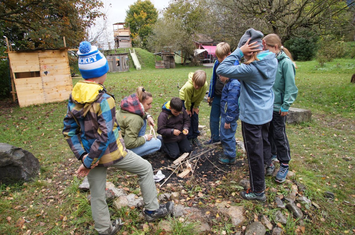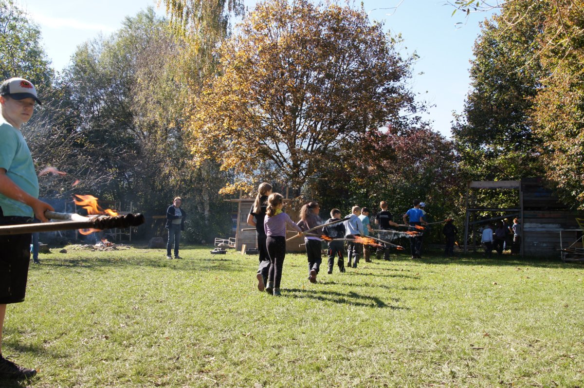 Das Motto «Feuer», unter dem die Herbstrojektwoche in diesem Jahr stand, stiess bei den teilnehmenden Kindern auf grosse Begeisterung. So konnten sie sich beispielsweise nach alter Pfadfinder-Manier darin versuchen, nur mit Sonnenlicht und einer Lupe ein Feuer zu entfachen. Eine echte Herausforderung für die kleinen Abenteurerinnen und Abenteurer. Gleichzeitig wurde aber auch das sichere Anzünden von Streichhölzern geübt – was gar nicht so einfach war, wie es immer aussieht.