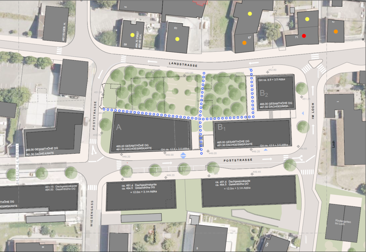 «Am Gesamtkonzept hat sich nichts geändert», sagt Gemeindevorsteher Daniel Hilti. Wenn die letzte Weiterführung der Poststrasse bis hin zur Kreuzung Landtrasse-Loch-Winkelgass einmal fertiggestellt ist, wird in diesem Perimeter entlang der Landstrasse ein Grünbereich sein, entlang der Poststrasse befindet sich dann die Bausubstanz. «Die Überlegung dahinter ist es, die historischen, teils denkmalgeschützten Gebäude östlich der Hauptstrasse im Gebiet St. Peter-Winkel optisch nicht zu erdrücken, sondern sie zur Geltung zu bringen.»