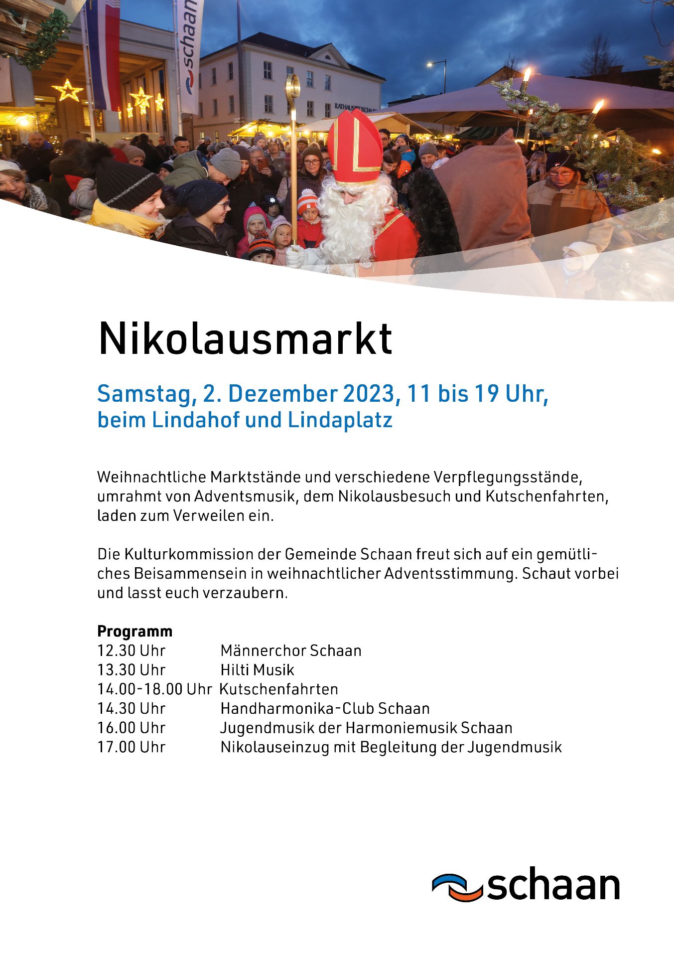 Der Nikolausmarkt im Schaaner Zentrum findet dieses Jahr am Samstag, 2. Dezember, statt. Am Sonntag, 3. Dezember, folgt die Seniorenadventsfeier im SAL.