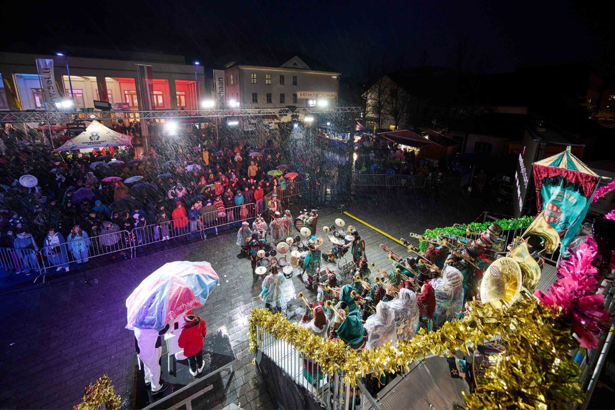 Das Monsterkonzert am Samstagabend auf dem Lindaplatz zeigte einmal mehr, wie fest die Fasnacht in Schaan verankert ist: Trotz Regen sorgten die Guggamusiken aus nah und fern für Partystimmung, während sich engagierte Vereine um das leibliche Wohl des feierfreudigen Publikums kümmerten. Ein ausgelassener Abend, der erst viele Stunden später an der Strassenfasnacht seinen würdigen Ausklang fand.