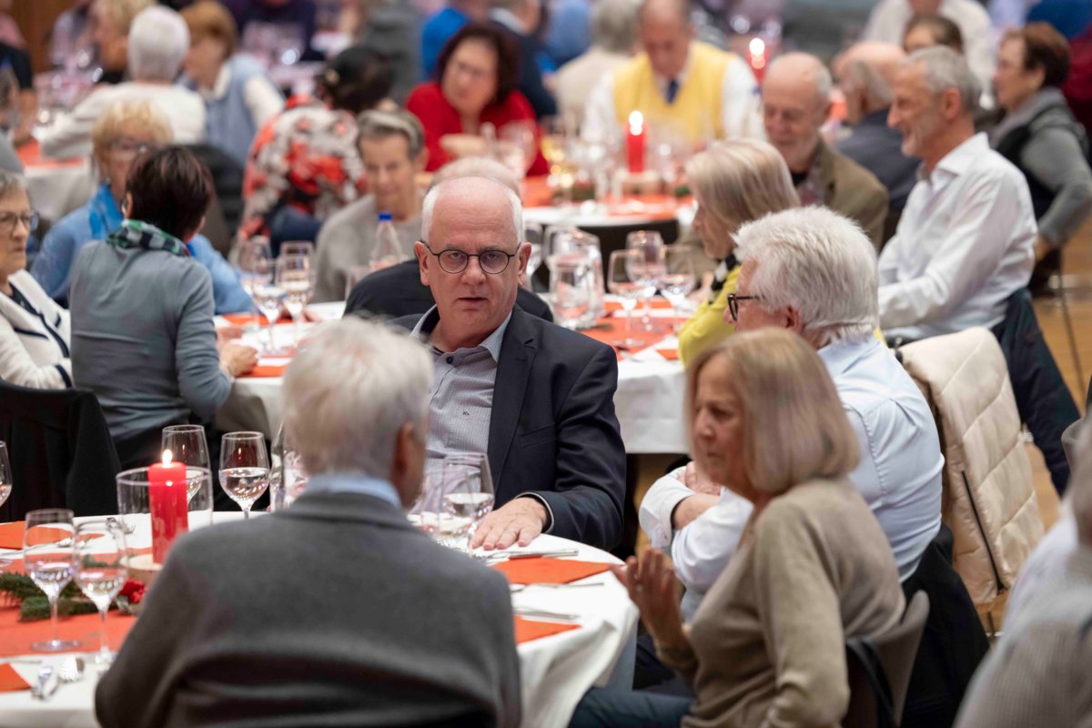 Zwischen Apéro und Dessert blieb ausreichend Zeit für angeregte Gespräche und das Wiedersehen mit vertrauten Gesichtern. Später hiessen Hubert Hilti vom OK sowie Gemeindevorsteher Daniel Hilti die Gäste offiziell willkommen und richteten ihre Adventsgrüsse an die Anwesenden. Die musikalischen Darbietungen des Resch-Chors verliehen den Worten einen besonders feierlichen Rahmen und sorgte für ein kollektives Innehalten im Trubel des Alltags.