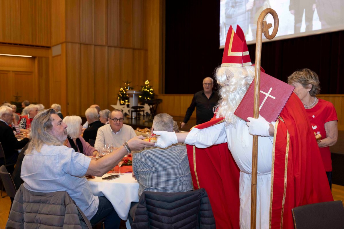 Es war ein besinnlicher Nachmittag, der ganz im Zeichen der Gemeinschaft stand – es wurde gelacht, angestossen und die besondere Atmosphäre genossen. Und natürlich fehlten auch zwei vertraute Besucher nicht: Nikolaus Albert Eberle und Krampus Ralf Wenaweser. Mit seiner warmherzigen Ansprache berührte der Nikolaus die Seniorinnen und Senioren und verteilte gemeinsam mit seinem Gehilfen kleine Geschenke, die so manches Gesicht zum Strahlen brachten.