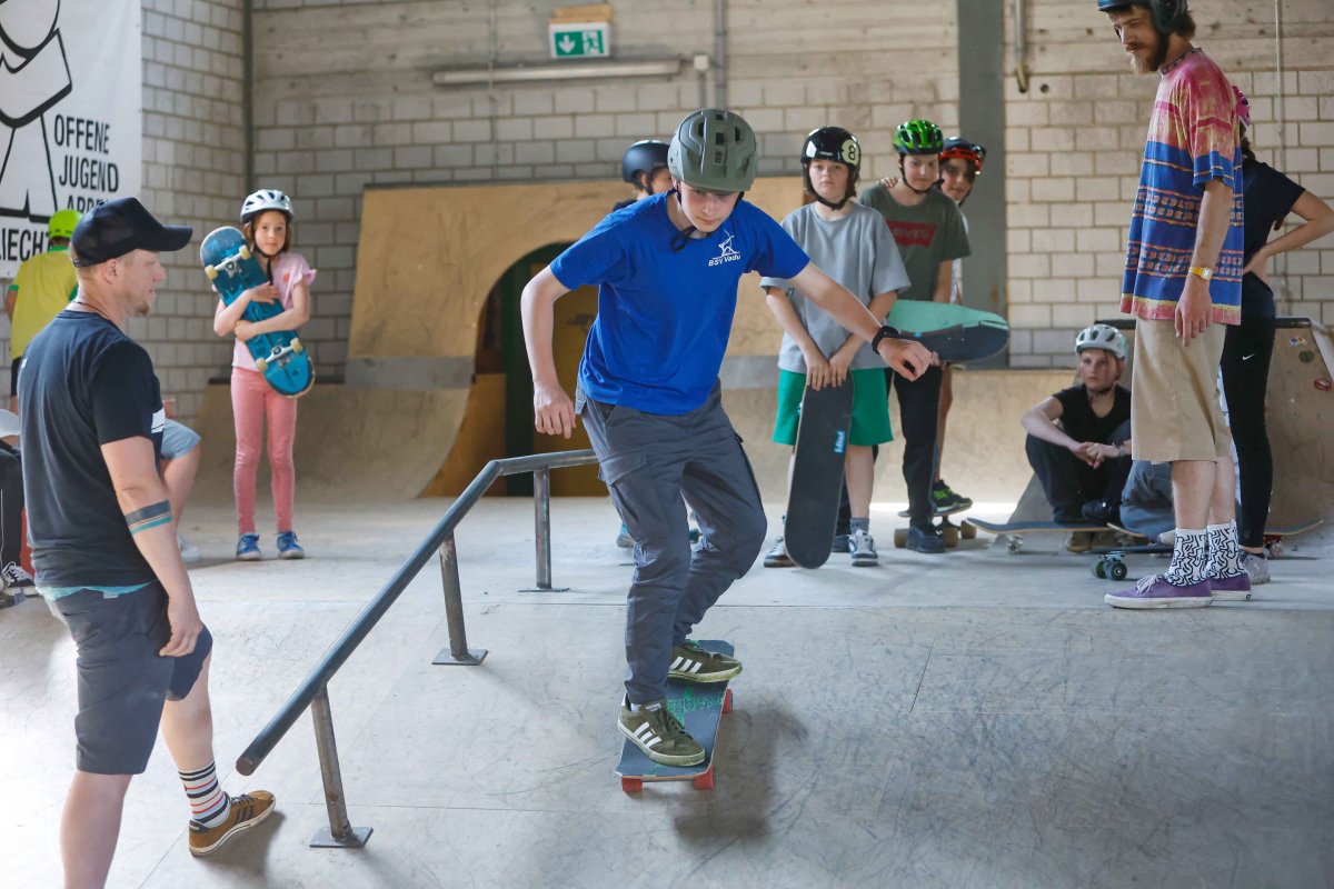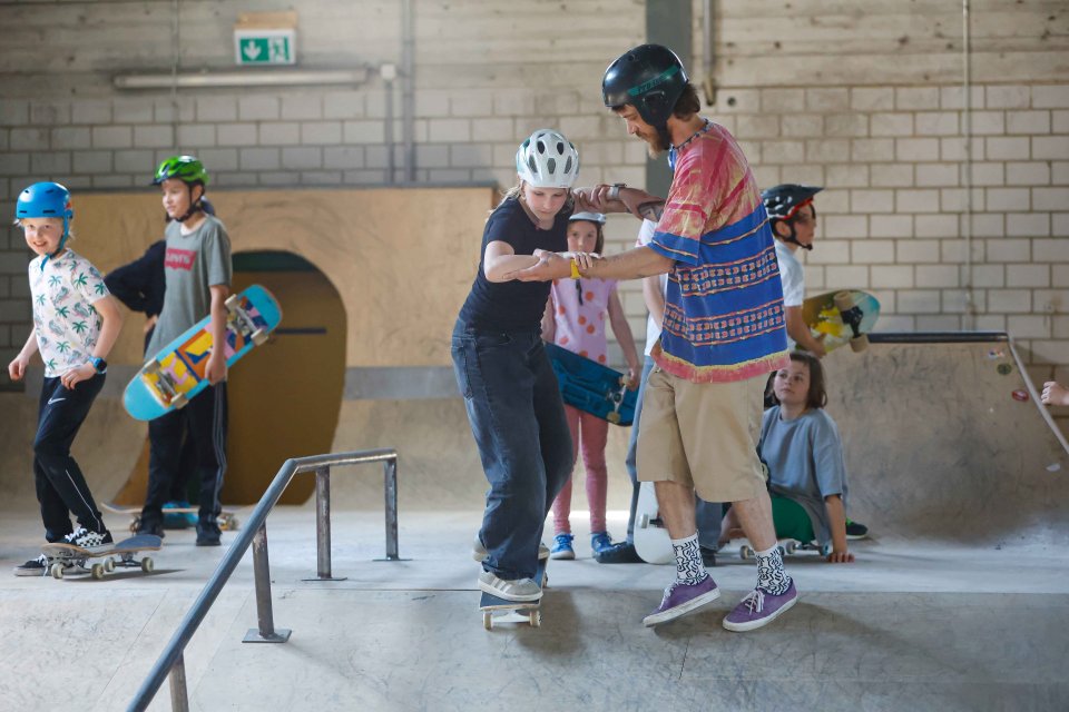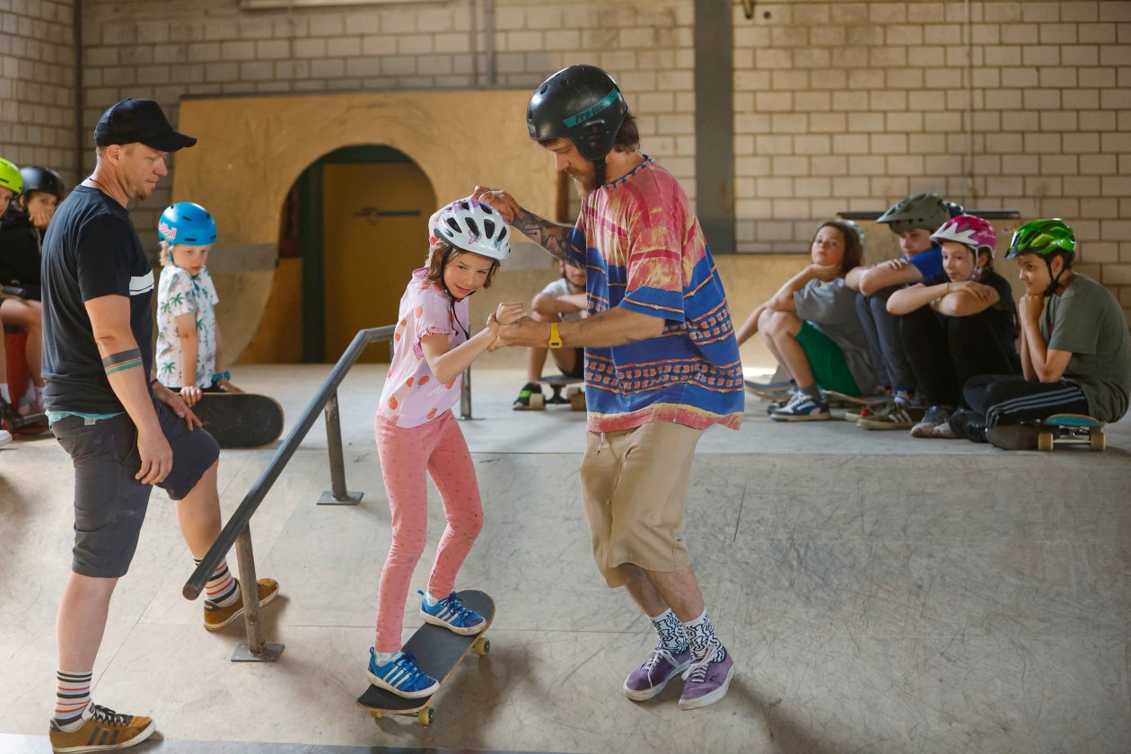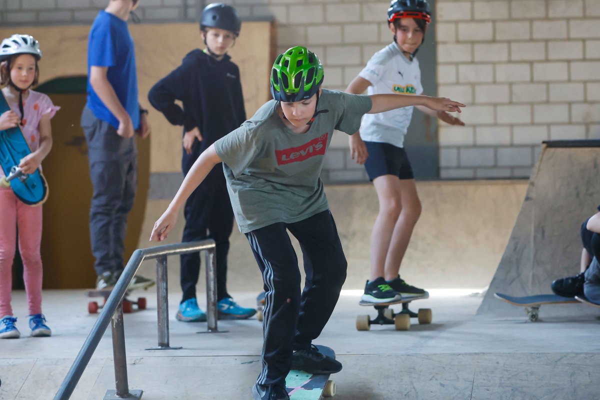 Unter dem Motto "Lenken, Pushen, Bremsen" haben Anfänger:innen die Möglichkeit, bei uns wichtige Basics beim Skaten zu lernen bzw. diese zu verbessern.