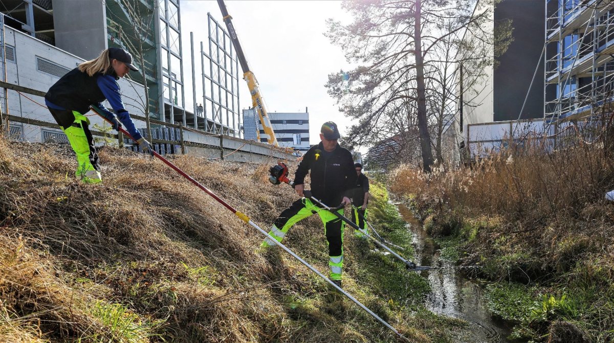 Die Mitarbeitenden des Werkhofs mähen Rasenflächen, säen Blumenwiesen an, bekämpfen Unkraut und giessen, wenn nötig, Bäume und Blumenrabatten.