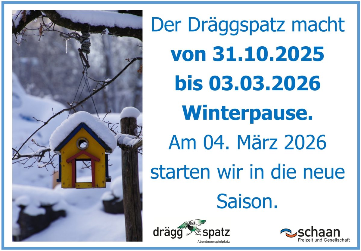 Der Dräggspatz macht von 31.10.2025 bis 03.03.2026 Winterpause.