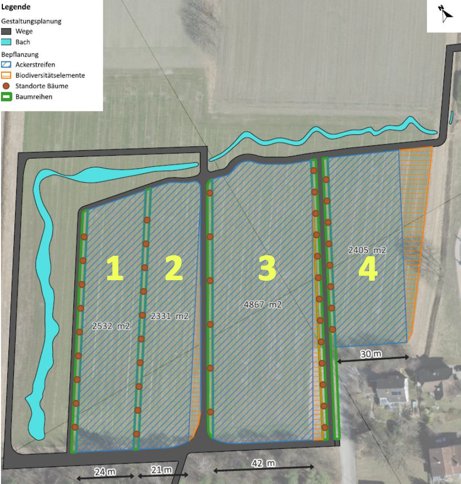 Ein zentraler Bestandteil des Parks im Äscherle ist das Innovationsfeld im System «Agroforst», das rund 14’000 Quadratmeter umfasst und das erste seiner Art in Liechtenstein ist. Es setzt sich aus drei Elementen zusammen: Biodiversitätsflächen, Baumreihen und Ackerstreifen. Agroforstsysteme sind per Definition multifunktionale Landnutzungssysteme, welche den Anbau von Bäumen und Sträuchern mit Ackerkulturen und/oder Viehhaltung auf derselben Fläche kombinieren.