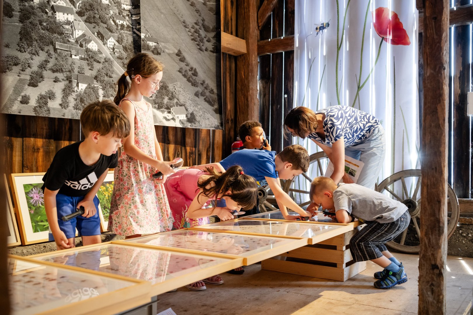 Was haben Kürbis, Shampoo und Gummibärchen mit Bienen zu tun? Welches «Trio infernale» wohnt in Schwabbrünnen? Was sind Pollenhöschen, Nektarraub und Kuckucksbienen? Die Ausstellung zeigt anhand der Bienen die Faszination der Natur im Kleinsten, regt zum genauen Beobachten an und thematisiert die vielfältigen Verbindungen zu unserem Alltag.