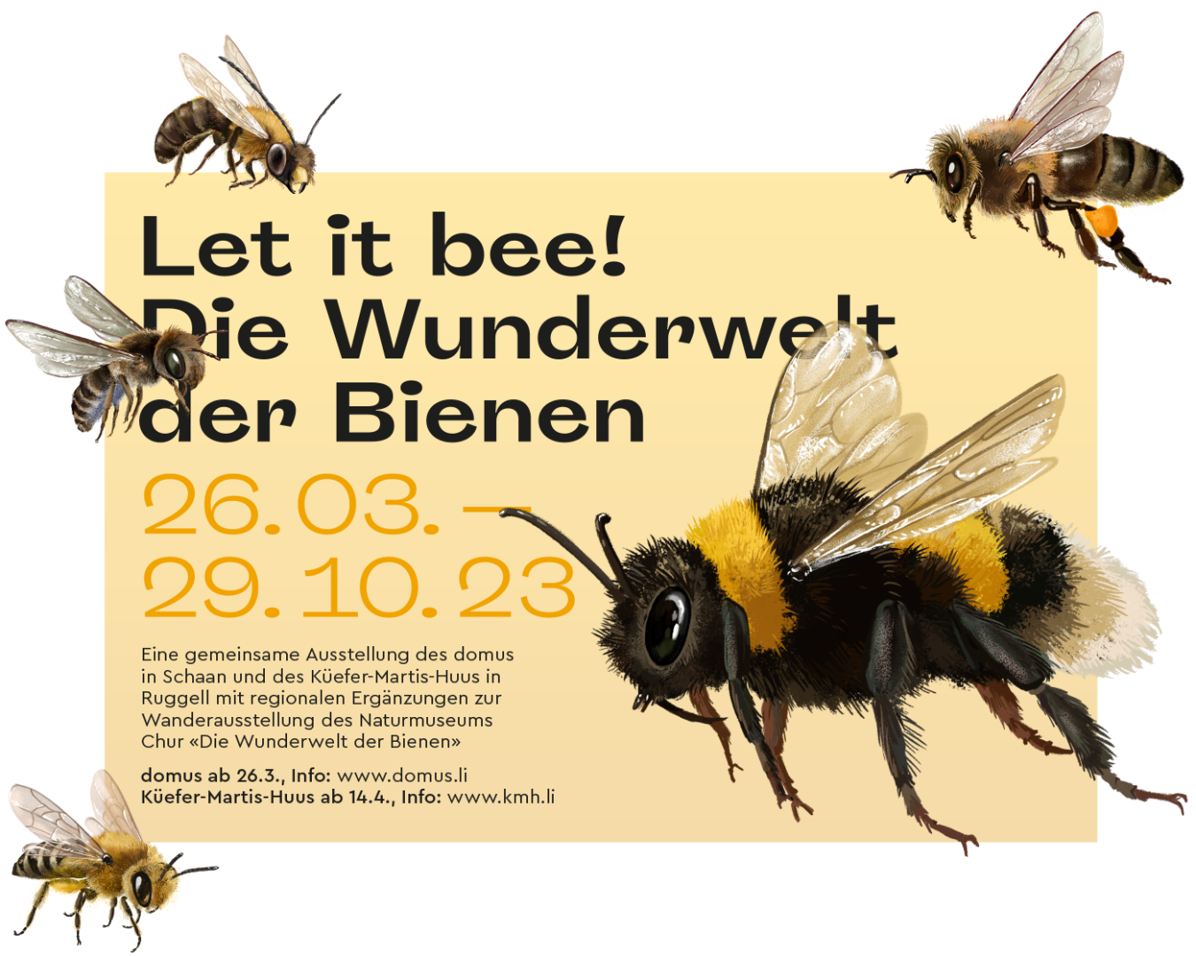 Eine gemeinsame Ausstellung des domus in Schaan und des Küefer-Martis-Huus in Ruggell mit regionalen Ergänzungen zur Wanderausstellung des Naturmuseums Chur "Die Wunderwelt der Bienen".