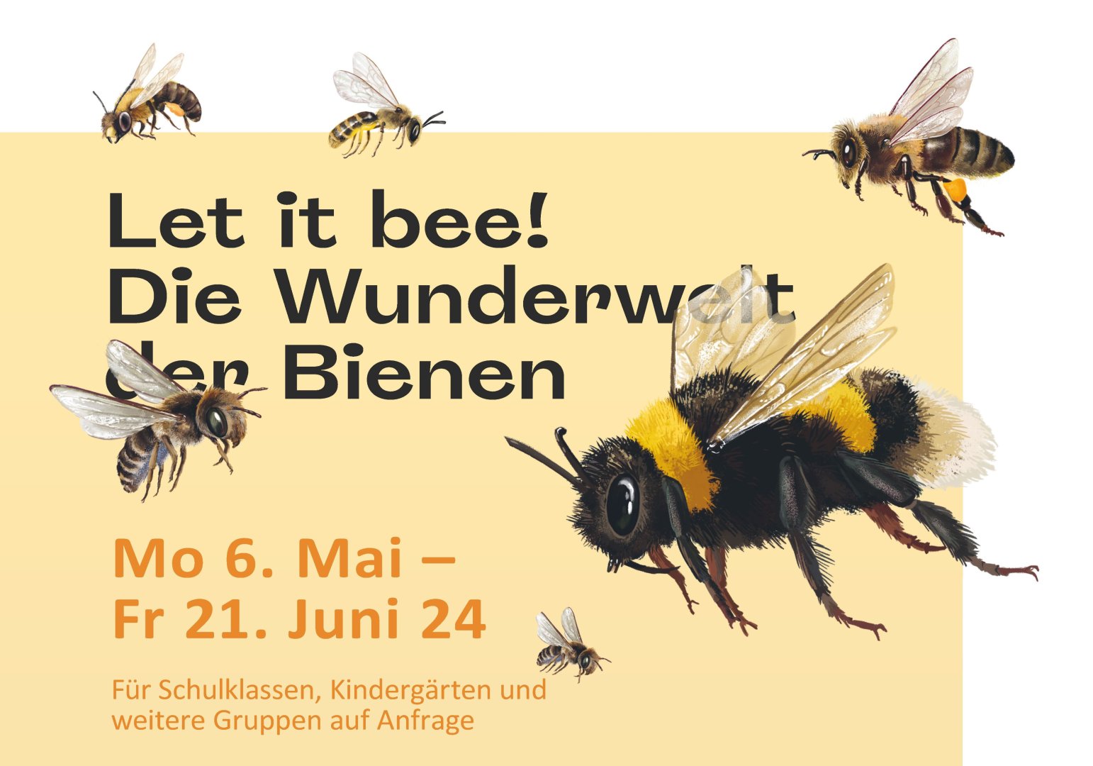In der domus-Galerie ist die Ausstellung „Let it bee! Die Wunderwelt der Bienen" zu sehen. Auf die Besucherinnen und Besucher wartet ein sinnliches Begleitprogramm: duftendes Bienenwachs im Kinderprogramm, spannende visuelle Filmeinblicke, musikalisch-blumiger Sound und schmackhafte Cocktails.