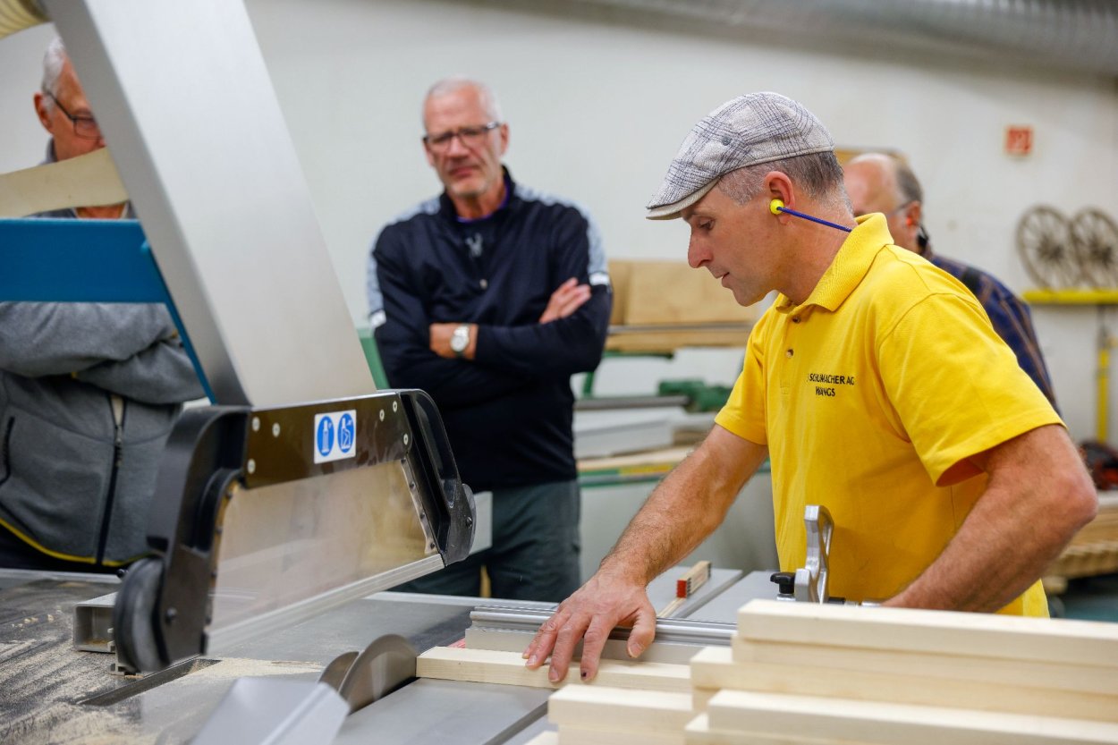 Am praktischen Beispiel wird professionelles und sicheres Arbeiten mit den vorhandenen stationären Holzbearbeitungsmaschinen vermittelt.