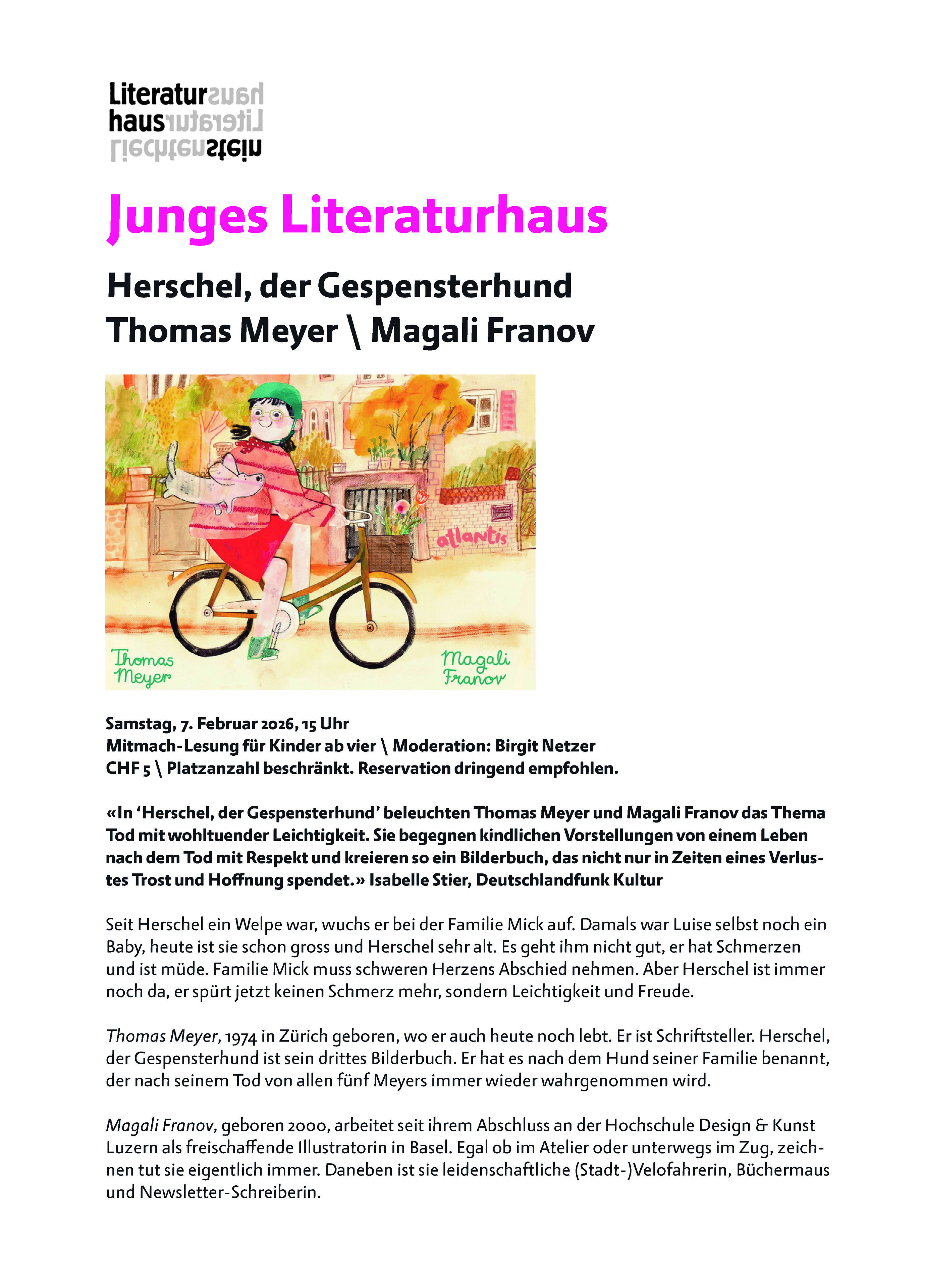 Junges Literaturhaus: "Herschel, der Gespensterhund" - Thomas Meyer / Magali Franov