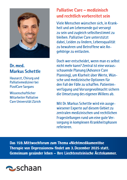 Die Liechtensteinische Ärztekammer lädt zum Informationsabend ein mit dem Thema: