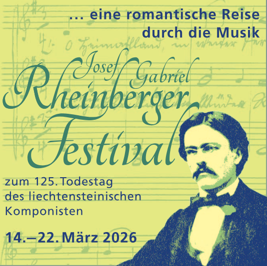 Unter der Schirmherrschaft I.K.H. Erbprinzessin Sophie von und zu Liechtenstein erklingt zum 125. Todestag des liechtensteinischen Komponisten Josef Gabriel Rheinberger vom 14. bis 22. März 2026 das Rheinberger Festival.