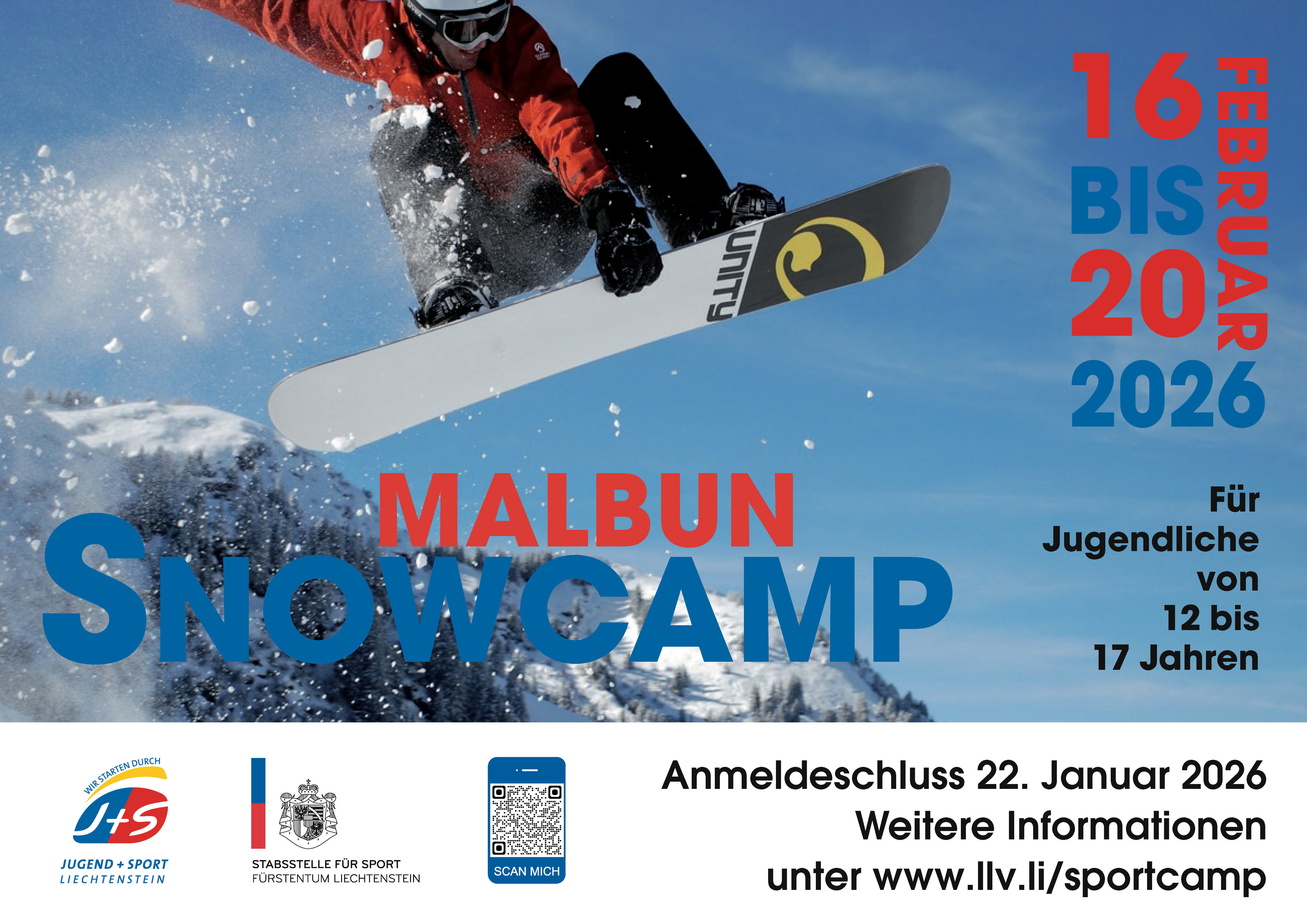 Die Stabsstelle für Sport lädt alle Jugendlichen von 12 bis 17 Jahren aus Liechtenstein zum Snowcamp in Malbun ein!